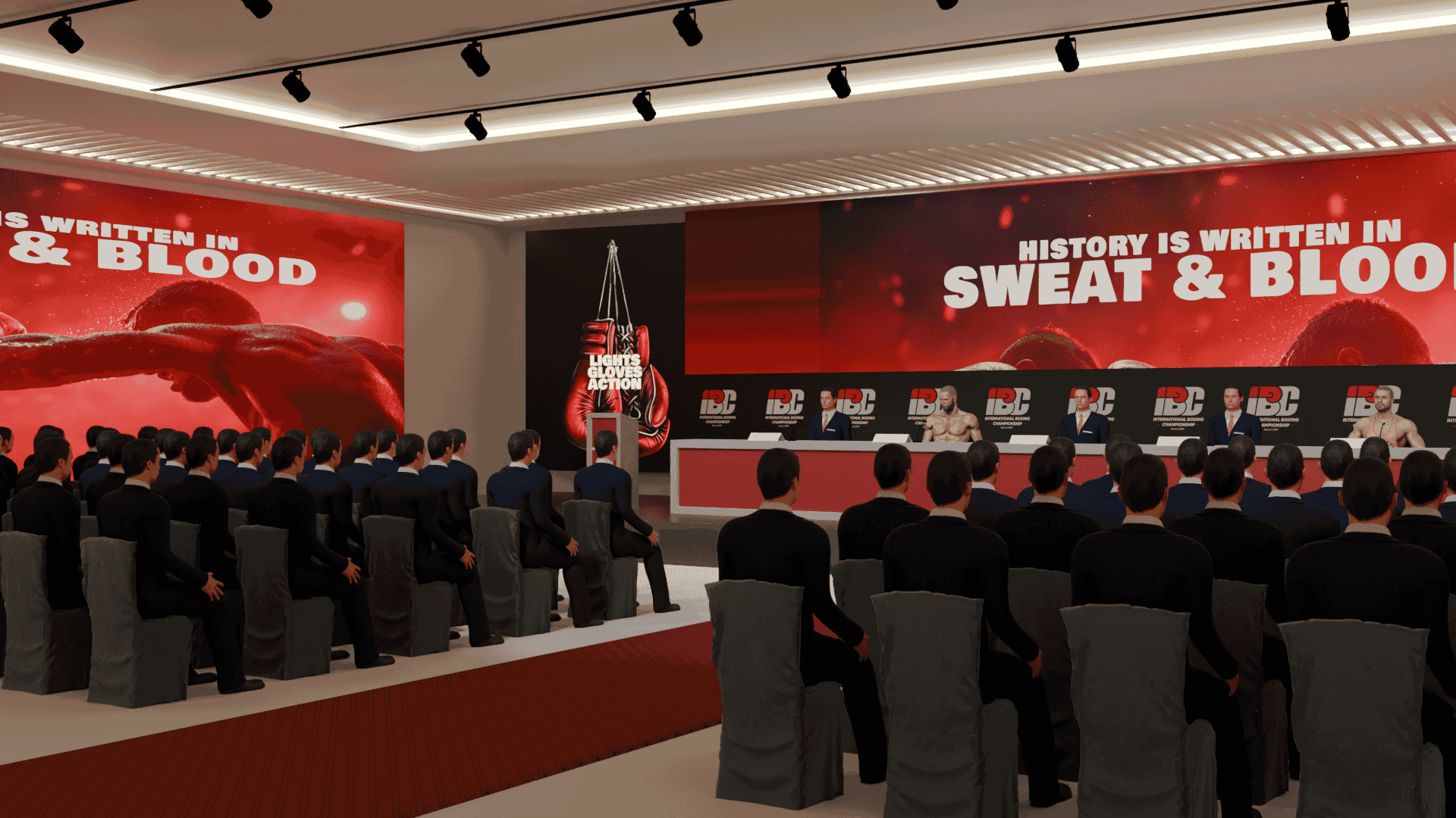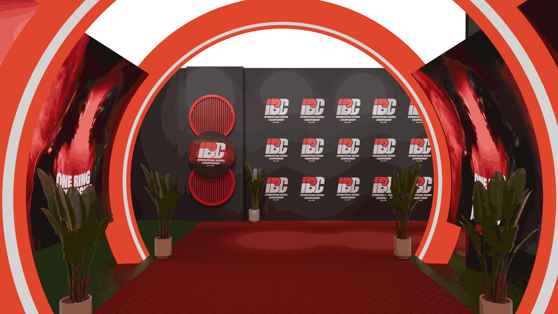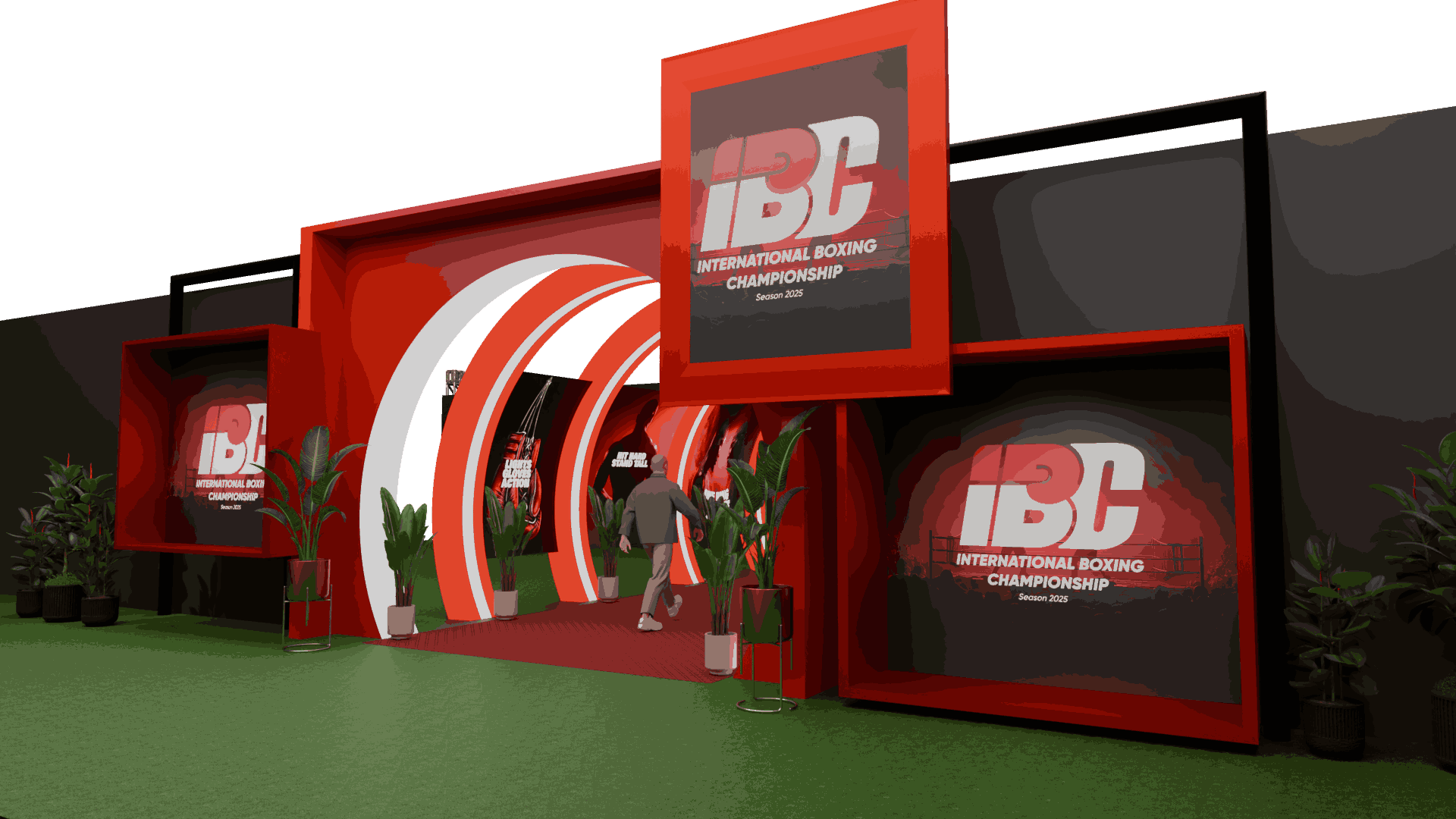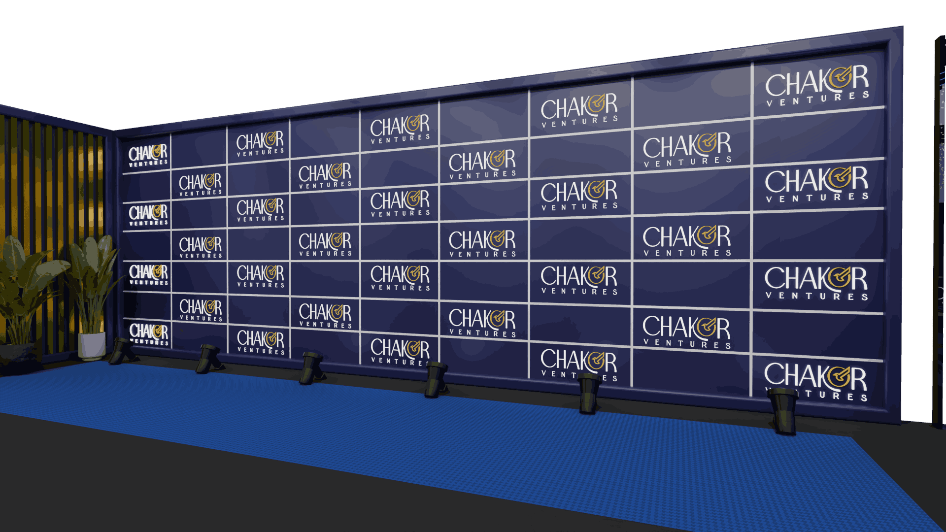 Full visual previews of stage backdrops and photo walls produced for client approval.