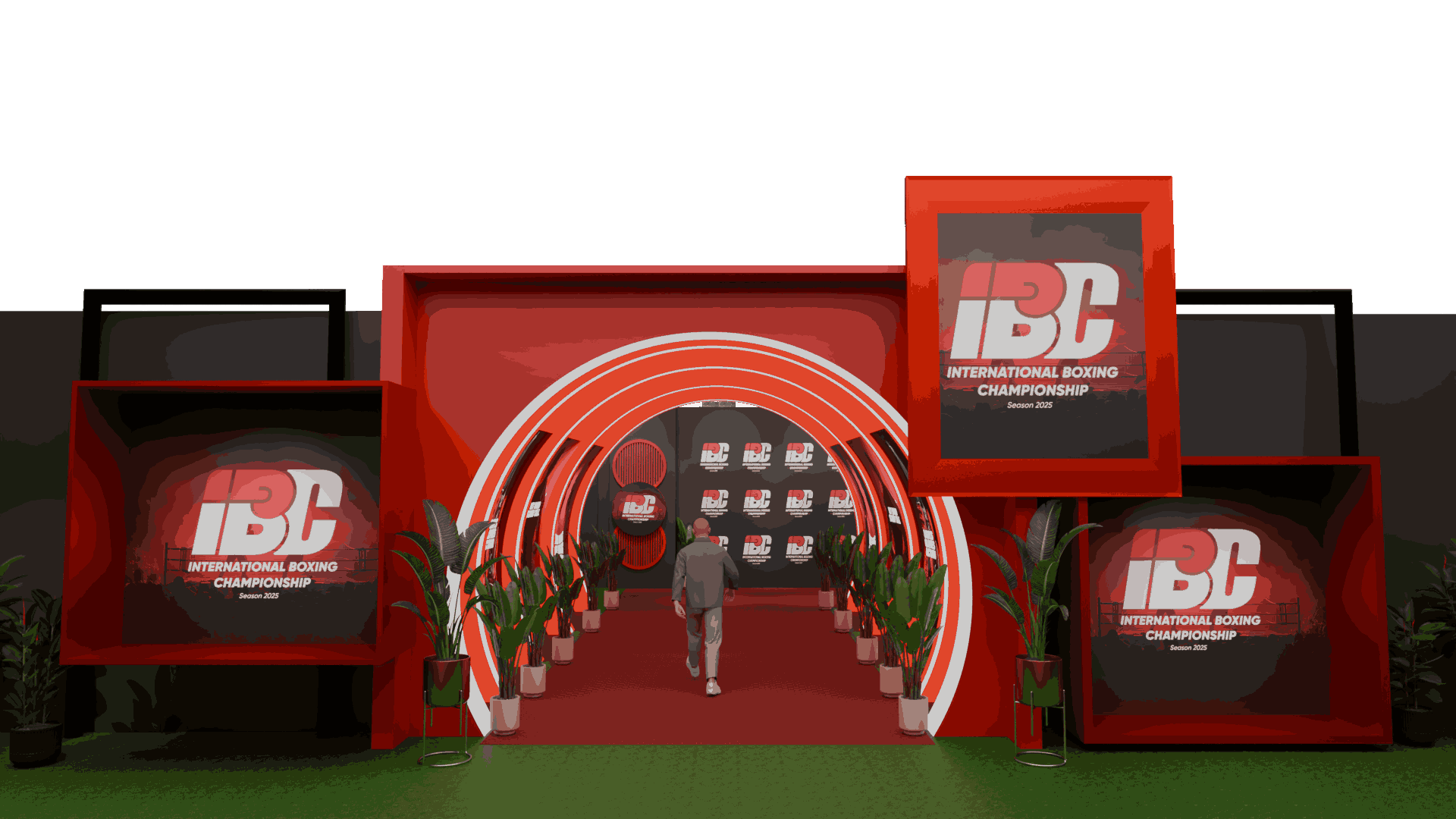 Every sponsor panel, backdrop, and logo surface positioned before print production begins.